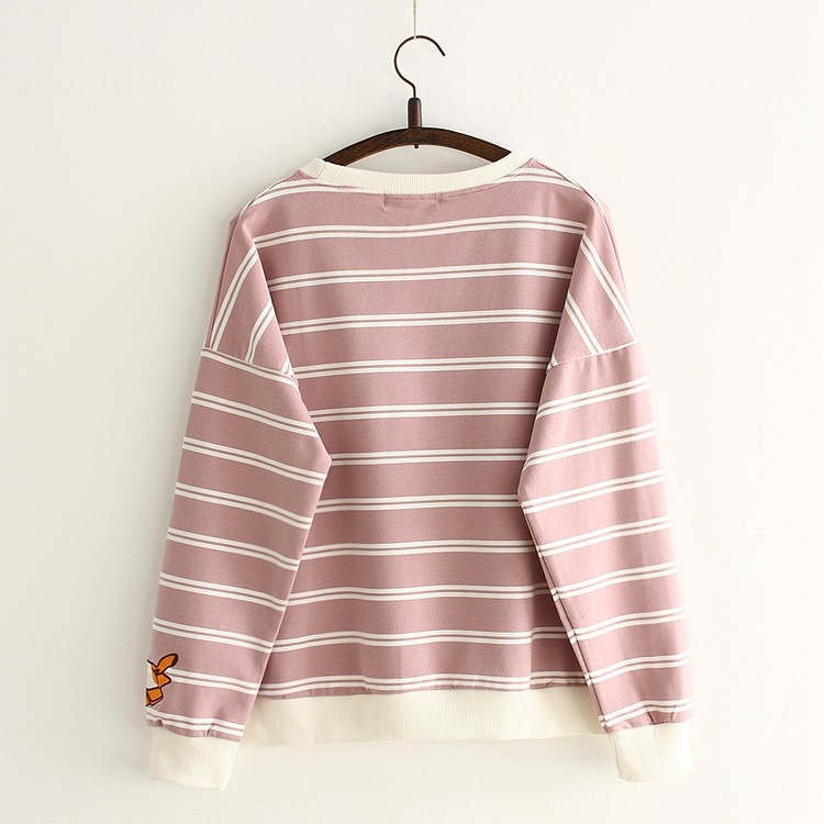 我終於找到了秋冬女裝新款鈴鐺貓頭鷹刺繡條紋衛衣女圓領套頭長袖打底衫RX6485!